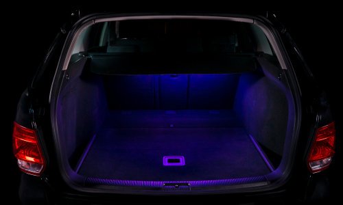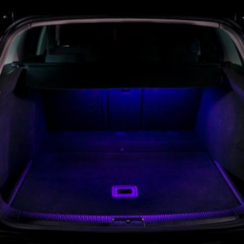 Iluminación moderna interior en techo, baul y tablero.